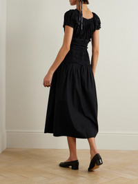 Leanne Shirred Organic Cotton-voile Midi Dress