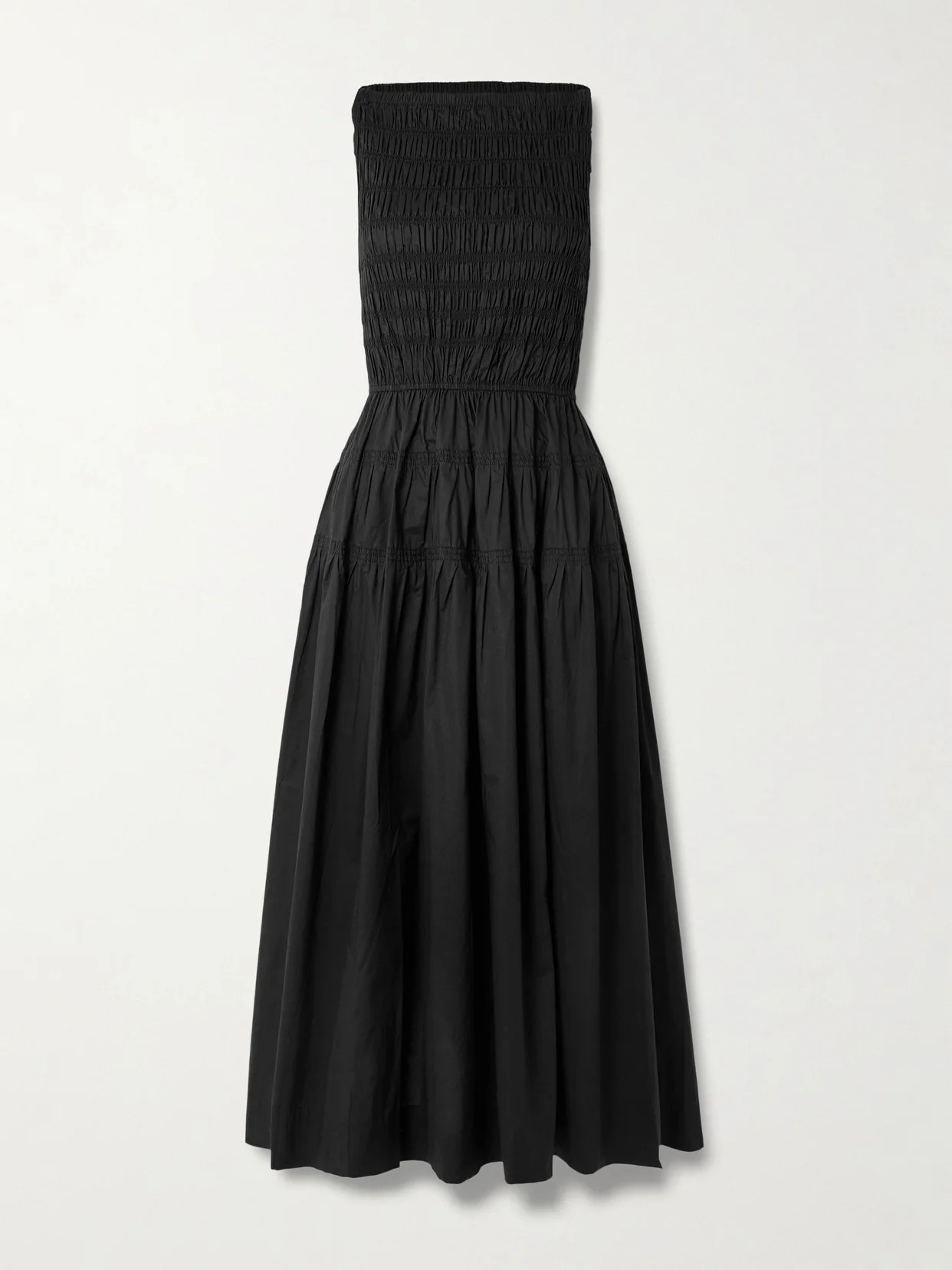 Melie Shirred Paneled Pleated Organic Cotton-poplin Midi Dress