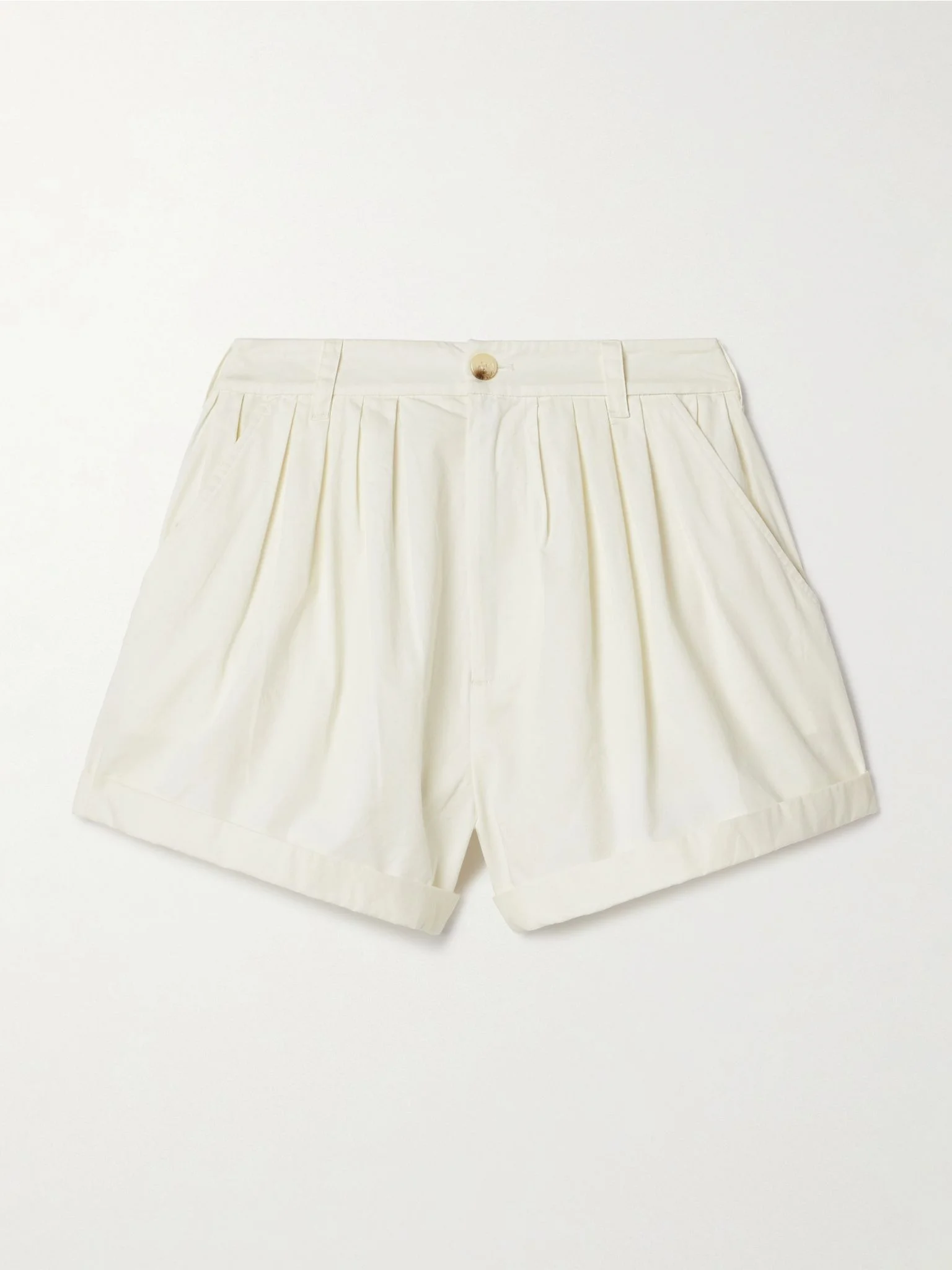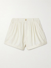 Paige pleated organic cotton-poplin shorts White