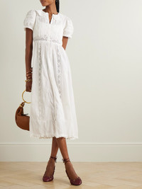 Phoebe Lace-trimmed Pintucked Organic Cotton-voile Midi Shirt Dress