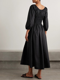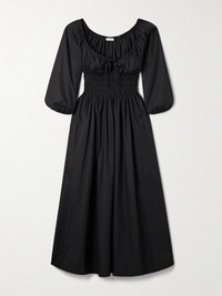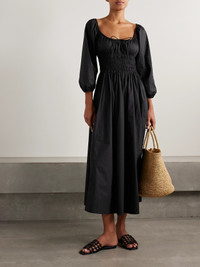 Quintessa Tie-detailed Shirred Organic Cotton-poplin Midi Dress