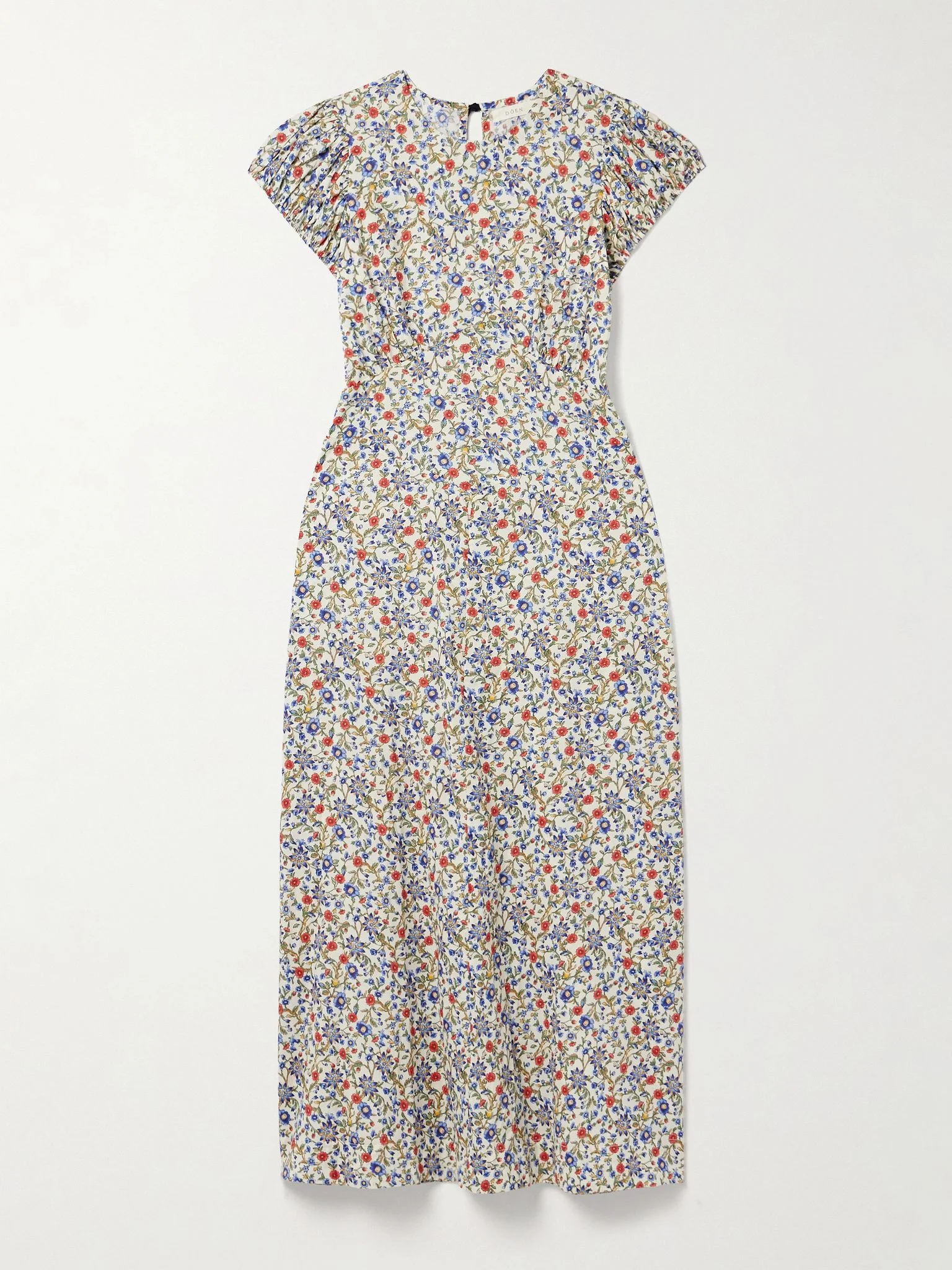DOEN describes its collections as "a celebration of womanhood," one that highlights the wearer's unique beauty and charm. This 'Rhodia' midi dress is made from floral-print organic cotton-voile and has gathered puff sleeves. Knot the grosgrain ties into a pretty bow at your nape. Size & Fit - Fits true to size, take your normal size - Intended to be slightly fitted at the bust and waist, loose at the hip - Lightweight, non-stretchy fabric - Model is 180cm/ 5'11" and is wearing a size Small Model measurements: - Bust: 81cm/ 32" - Waist: 61cm/ 24" - Hip: 85cm/ 33.5" Details & Care - Multicolored organic cotton-voile - Concealed zip fastening along side - 100% organic cotton - Unlined - Machine wash