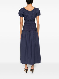 ruffled scoop-neck dress Highlights - Blue - Smocked bodice - Ruffled trims - Short sleeves - Midi length - Scoop neck Imported Composition Organic Cotton 100% SIZE & FIT Model measurements Height 5 ft 9 in(1.76 m) Bust/Chest 31.88 in(81 cm) Hips 35.43 in(90 cm) Waist 24.8 in(63 cm) Washing instructions Hand Wash