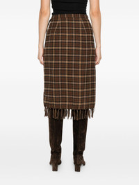 Saskia checked midi skirt Highlights - Brown - Check pattern - Fringe detailing - Side tie detail - Knee length - Wrap design Imported Composition Fabric 100% SIZE & FIT Model measurements Height 5 ft 9 in(1.75 m) Bust/Chest 32.67 in(83 cm) Hips 36.22 in(92 cm) Waist 24.8 in(63 cm) Washing instructions Read Manufacturer Guidelines