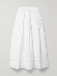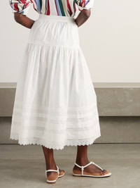 Sebastiane Broderie Anglaise-trimmed Organic Cotton-poplin Midi Skirt