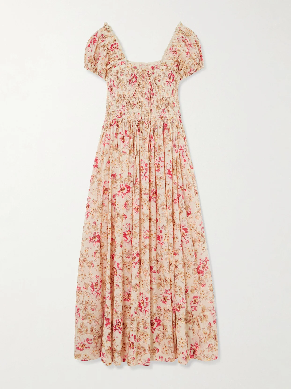 Stanza Lace-trimmed Floral-print Organic Cotton-voile Midi Dress