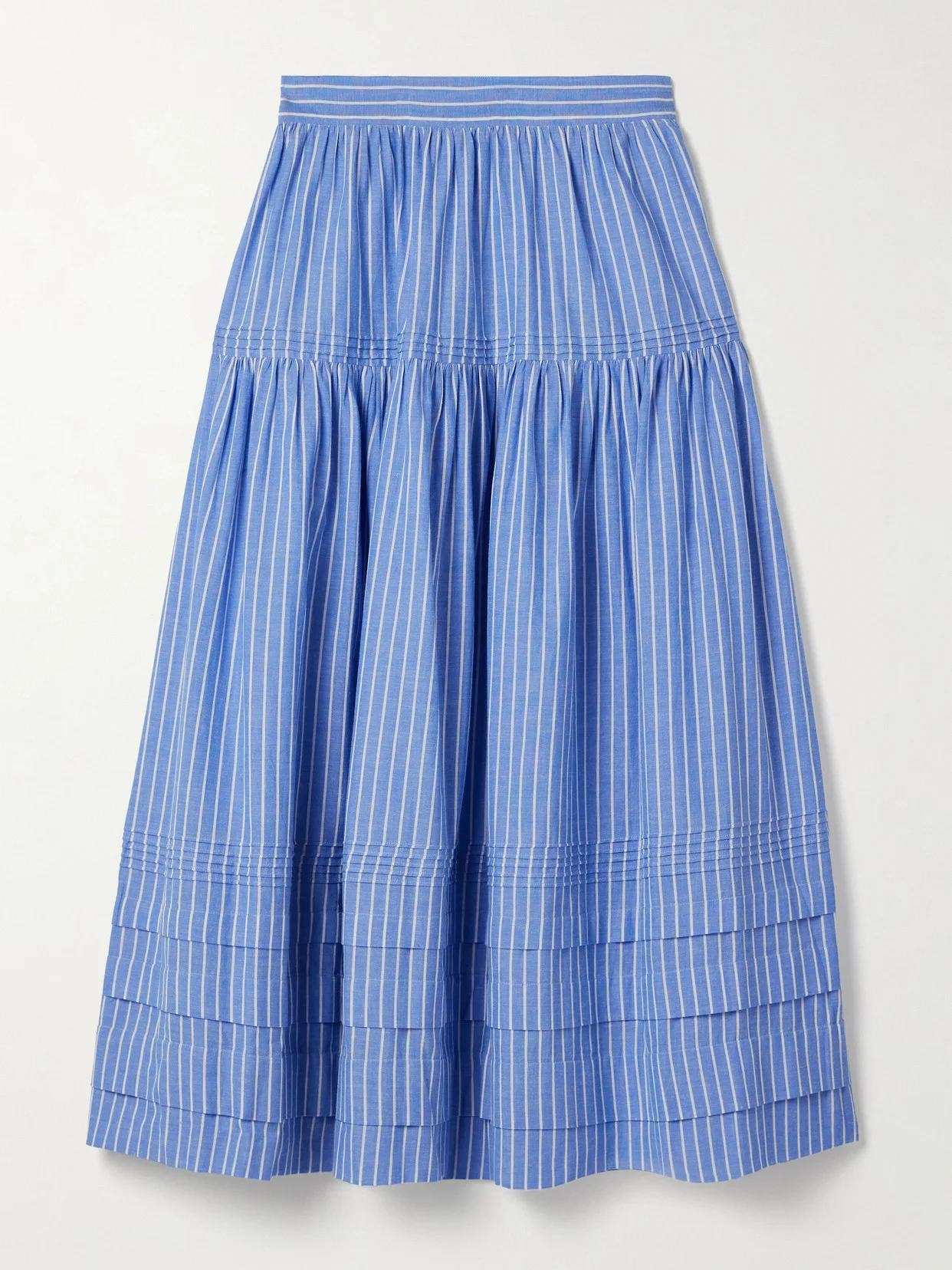 DOEN's 'Sebastiane' midi skirt is made from organic cotton-poplin that's gathered along each tier to create pretty volume. It's designed to sit at your natural waist and has a vertical stripe motif. Wear it with flat sandals or heels, depending on the occasion.