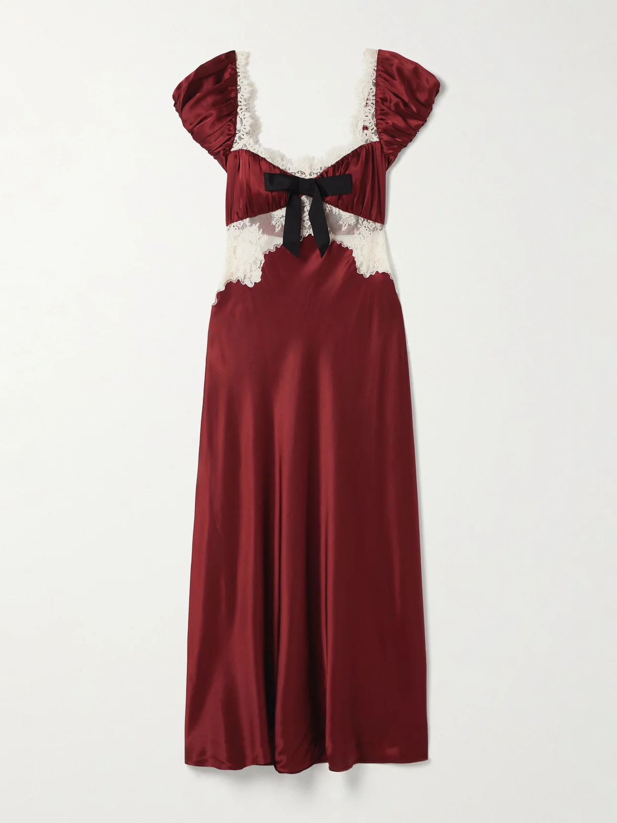 Veda Bow-detailed Corded Lace-trimmed Silk-charmeuse Midi Dress