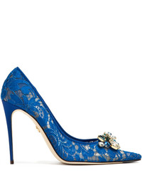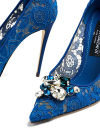 105 mm Rainbow lace jewel-embellished pumps Highlights - Royal blue - Pointed toe - Stiletto heel - Jewel embellishment - High heel Made in Italy Composition Viscose 67%, Cotton 29%, Polyamide 4% SIZE & FIT Measurement HEEL 4.13 in(10.5 cm)