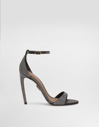 This satin sandal with rhinestones stands out for its elegant and modern design, perfect for formal occasions and special evenings. Silk satin sandals with rhinestones: • Multi-colored • Keira shape • Devotion heel • Leather sole with Devotion heart • Open toe leather insole with fire stamp • Gold plating • Item equipped with black cotton bag and black embossed box • Heels height: 105 mm high • Made in Italy External Composition: 68% Viscose, 32% Silk Internal Composition: 44% Goatskin, 41% Lambskin, 10% Viscose, 5% Silk