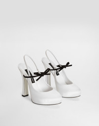 Beauty, sensuality and allure have inspired the Sfilata collection. These new Vally slingbacks come in satin with bow appliqu� on the strap. Satin platform slingbacks with bow detail: • White • 105-mm platform • Strap with elastic insert and bow detail • Kidskin insole with branded label • Branded leather sole • Item comes with a branded dust bag • Made in Italy External composition: 68% Viscose 32% Silk Internal composition: 75% Goatskin 17% Viscose 8% Silk