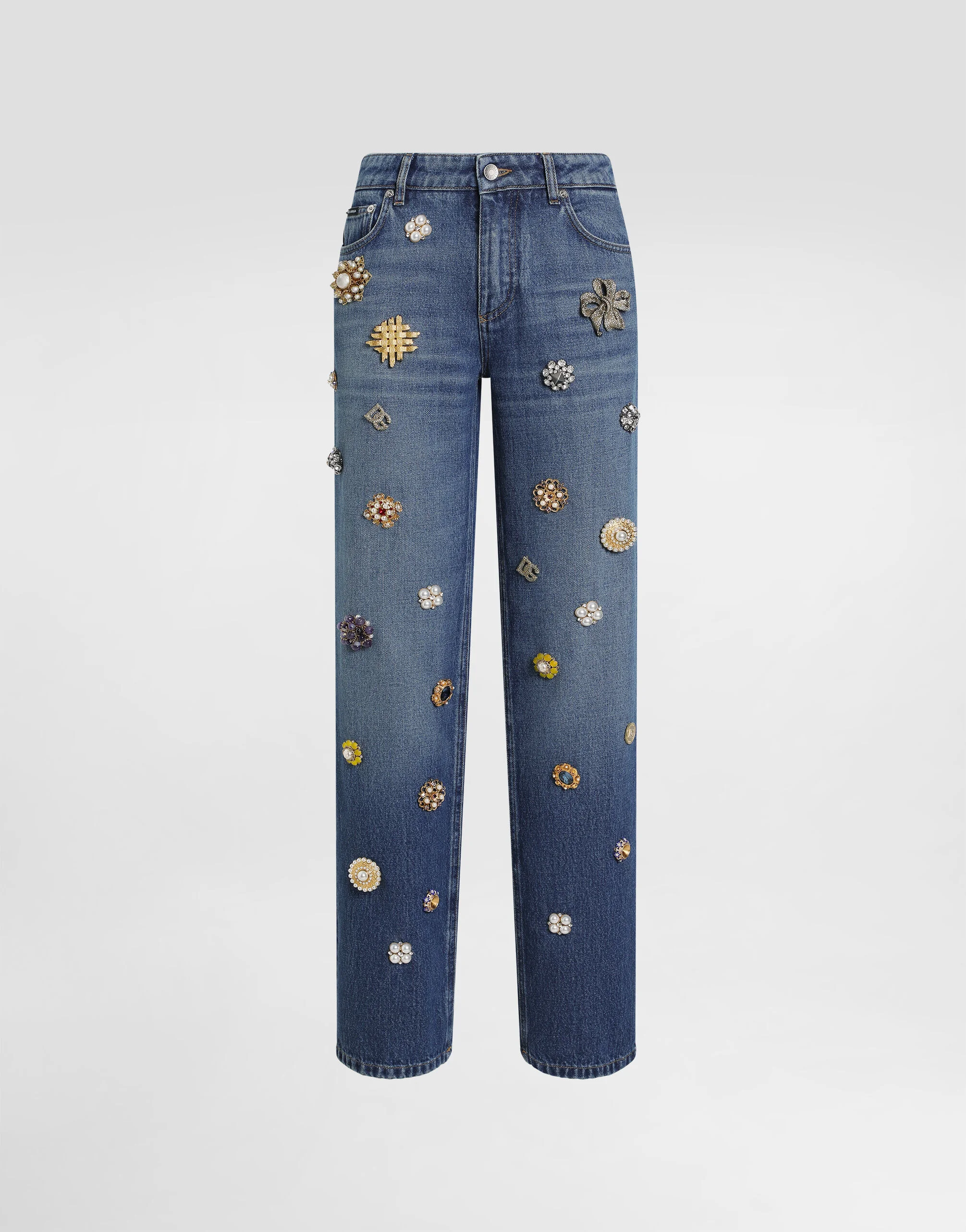 Discover the timeless charm of denim with these 5-pocket trousers, ideal for those looking for a casual but refined look. Perfect for any occasion, this garment is a must-have in every woman's wardrobe. 5-pocket denim trousers: • Multi-colored • The model is 175 cm tall and wears size 40 IT • Made in Italy External Composition: 100% Cotton
