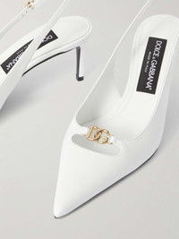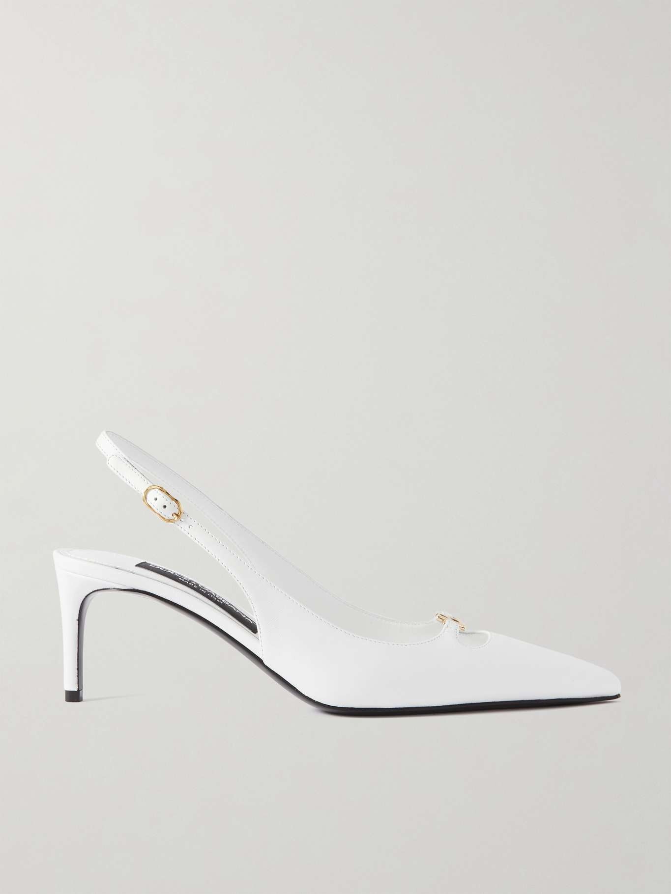 EDITORS'NOTES Dolce&Gabbana's 'Lollo' pumps draw on '60s elegance with their chic, sharp lines. They're made from leather that shines with gilded hardware at the ankle strap and cutout vamp. SIZE & FIT - Fits true to size, take your normal size - Italian sizing DETAILS & CARE - Heel measures 60 mm/ 2.5 inches - White leather - Buckle-fastening slingback strap