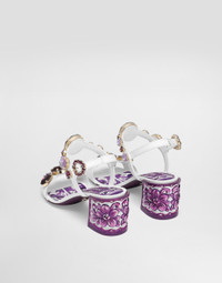 This formal sandal is a perfect fusion of elegance and craftsmanship, enriched with jewel details that enhance its refinement. Patent leather sandal with jewel embroidery: • Multi-coloured • Shape Keira, Courmayeur heel • Leather sole with DG metal logo • Open toe insole in printed leather with logo • Embroidery with stones and jewel buckle • Palladium electroplating • Item equipped with black cotton bag and black embossed box • Heel height 60 mm • Made in Italy External Composition: 100% Calfskin Internal Composition: 69% Goat leather, 31% Calfskin