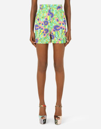 Dolce&Gabbana has always explored, narrated and merged different cultures and with its masterful mix-and-match styling it has created the Renaissance line, which pays tribute to a new, modern form of feminine beauty based on the simplicity of shapes paired with bold layering. So immerse yourself in the carefree aesthetic of these vibrantly-colored shorts in stretch wool gabardine that will stand out with their comfortable fit and high waist: • Dolce high waist • Slant front pockets • Welt back pockets • Belt loops • Inner leg: 8 cm - 3.1 inches • Hem: 33.8 cm - 13.3 inches • Zipper and pearl DG button fastening • The model is 175 cm - 68.9 inches tall and wears a size IT 40 • Made in Italy Care And Details External composition: 90% Wool 08% Polyamide 02% Spandex