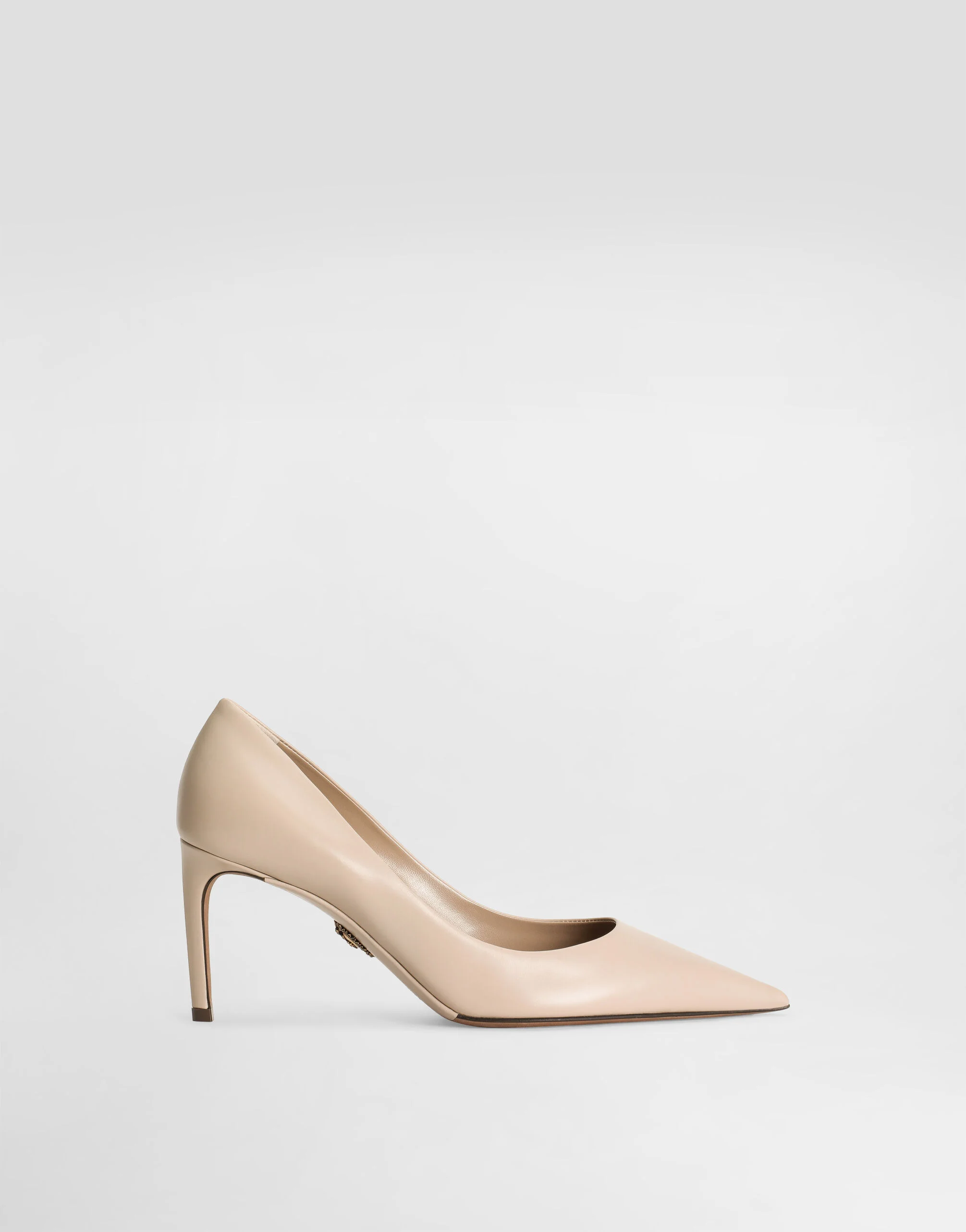 Elegant and sophisticated, the Devotion calfskin pump is a must-have for any formal occasion, combining classic design with a modern twist. Calfskin pumps: • Beige • Devotion shape • Leather outsole with Devotion heart • Full-piece leather insole with fire stamp • Customization with Devotion Heart • Gold plating • Item equipped with black cotton bag and black embossed box • Heel height 80 mm • Made in Italy External Composition: 100% Calfskin Internal Composition: 40% Lambskin, 40% Goatskin, 20% Calf Leather