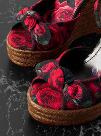 EDITORS'NOTES Dolce&Gabbana's 'Lolita' espadrille sandals are a chic way to enhance your warm-weather outfits. Made from canvas patterned with roses, they fasten with gold-tone logo buckles and rest on braided jute wedge heels. SIZE & FIT - Fits true to size, take your normal size - Only available in full sizes, go up to the nearest whole size if you take a half size DETAILS & CARE - Heel measures approximately 85mm/ 3.5 inches - Multicolored canvas - Buckle-fastening ankle strap
