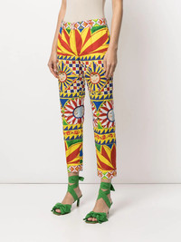 all-over print trousers multicolour cotton all-over print belt loops concealed front fastening two side inset pockets Made in Italy Composition Cotton 100% SIZE & FIT Model measurements Height 5 ft 9 in(1.76 m) Bust/Chest 29.13 in(74 cm) Hips 33.07 in(84 cm) Waist 22.83 in(58 cm) FittingInformation This piece fits true to size. We recommend you get your regular size Cut for a slim fit Made with a mid-weight fabric Washing instructions Dry Clean Only
