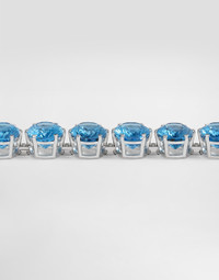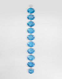 DOLCE&GABBANA, with the “Anna” collection, celebrates the concept of variety and exuberance. Color becomes the expressive language of these jewels. Each jewel evokes in its appearance the art, richness, harmony and colors of Italian gardens, in a sophisticated alternation capable of enhancing the idea of ??diversity and uniqueness. Technical specifications: Gold 750/000 Length: 19 cm Gemological details: Blue topazes bracelet 10 Swiss topazes: transparent, light blue color, oval shape, mixed cut. Total weight: 249.00 cts approximately 10 diamonds: transparent, colorless, round shape, brilliant cut. Total weight: 0.15 ct approximately; VVS-VS; color: D-G 18 kt white gold