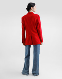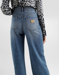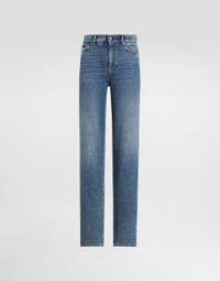 Dolce&Gabbana is conveying a new way of interpreting denim and does so by drawing inspiration from key words such as glamor and signature aesthetic, creating a collection that is perfect for every style and personality, merging femininity, modernity and originality. Cotton denim cigarette jeans: • Blue • High-waisted • 5 pockets • Branded label on the coin pocket • Branded metal and leather tag on the back pocket • Inner leg: 88 cm • Hem: 26 cm • Zipper and branded metal button fastening • The model is 175 cm tall and wears a size IT 40 • Made in Italy External composition: 100% Cotton