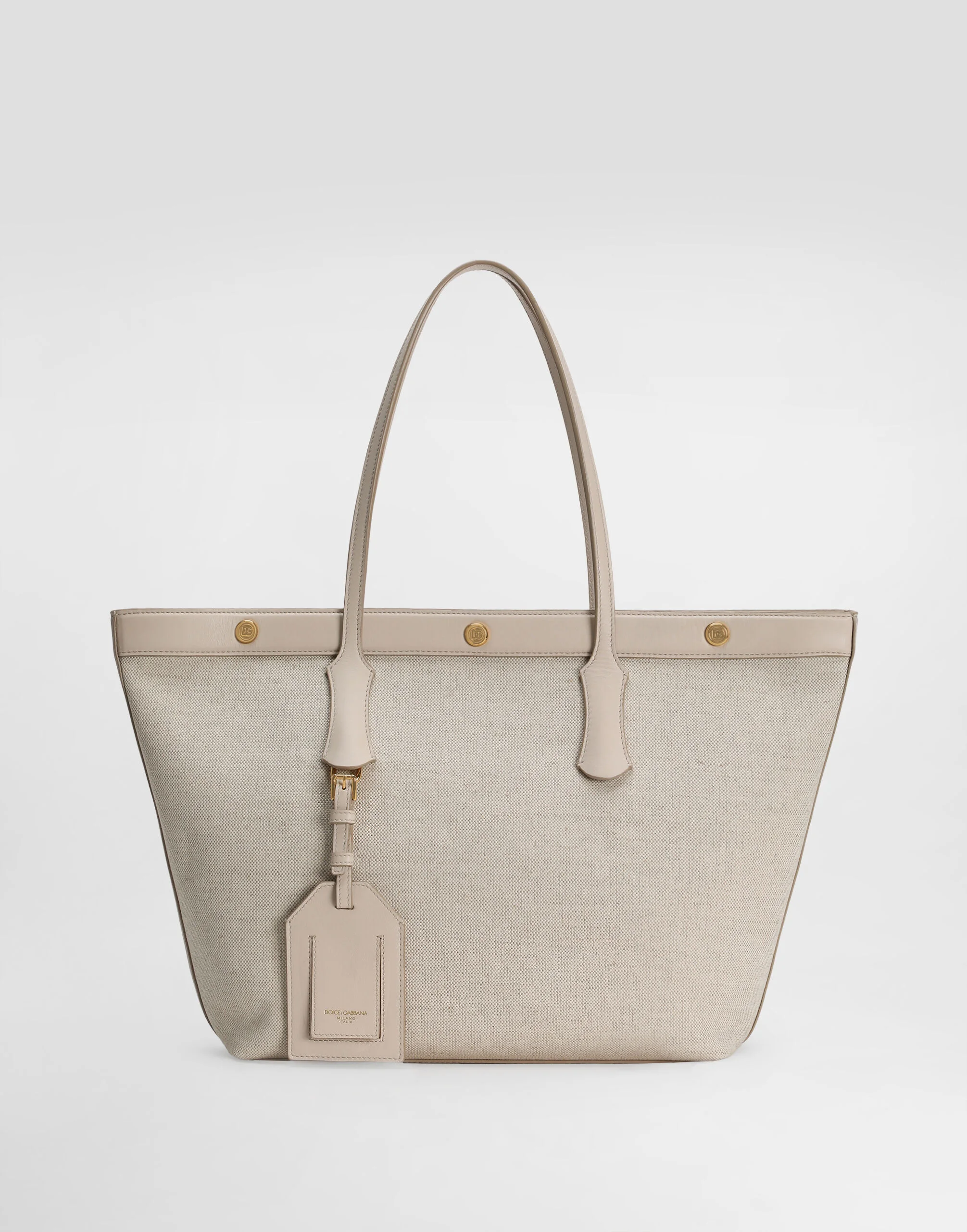 The Atene tote bag is the ideal companion for your days. Made with a refined salt&pepper bonded fabric, it combines elegance and practicality in a unique design. Atene Shopping in salt&pepper fabric: • Beige • Leather handles • Snap buttons closure • Vintage brass electroplating buckle • External and internal customization with stamp and film • Removable zip pocket • Item with logo bag • Measurements: H30 x W31 x D10 cm • Made in Italy External Composition: 71% Cotton, 15% Linen, 7% Polyester, 5% Calfskin, 2% PVC Internal Composition: 70% Cotton, 15% Linen, 10% Calfskin, 5% Polyester