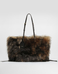 In the Fall/Winter 2025 Fashion Show Collection, shearling jackets, in fur-free versions, reveal slip dresses and create contrast' plays while denim welcomes fabric or Leo print inserts. Sweatshirts are the result of long experimentation with volumes. Evening looks become precious thanks to dresses with special embroideries and luminous touches of sequins and crystals. Sheepskin inserts also unite hats, shoes, and bags, including those with pockets. The Atene tote bag is a sophisticated and versatile accessory, perfect to accompany you through your days in style. Made with precious materials, this bag combines functionality with exclusive design. Atene shopping bag with fur: • Multi-colored • Leather handles, fixed adjustable shoulder strap • Zip closure • Vintage brass plating • External customization with logo button and stamp with film • Internal customization with stamp with film • Removable pouch • Item equipped with logo bag and a pre-assembled box • Measurements: H35.5 x L40 x W12 cm • Can hold keys, card holder and phone • Made in Italy External Composition: 80% Lamb with Fur, 15% Calf, 5% PVC Internal Composition: 80% Calfskin, 15% Cotton, 5% Acrylic