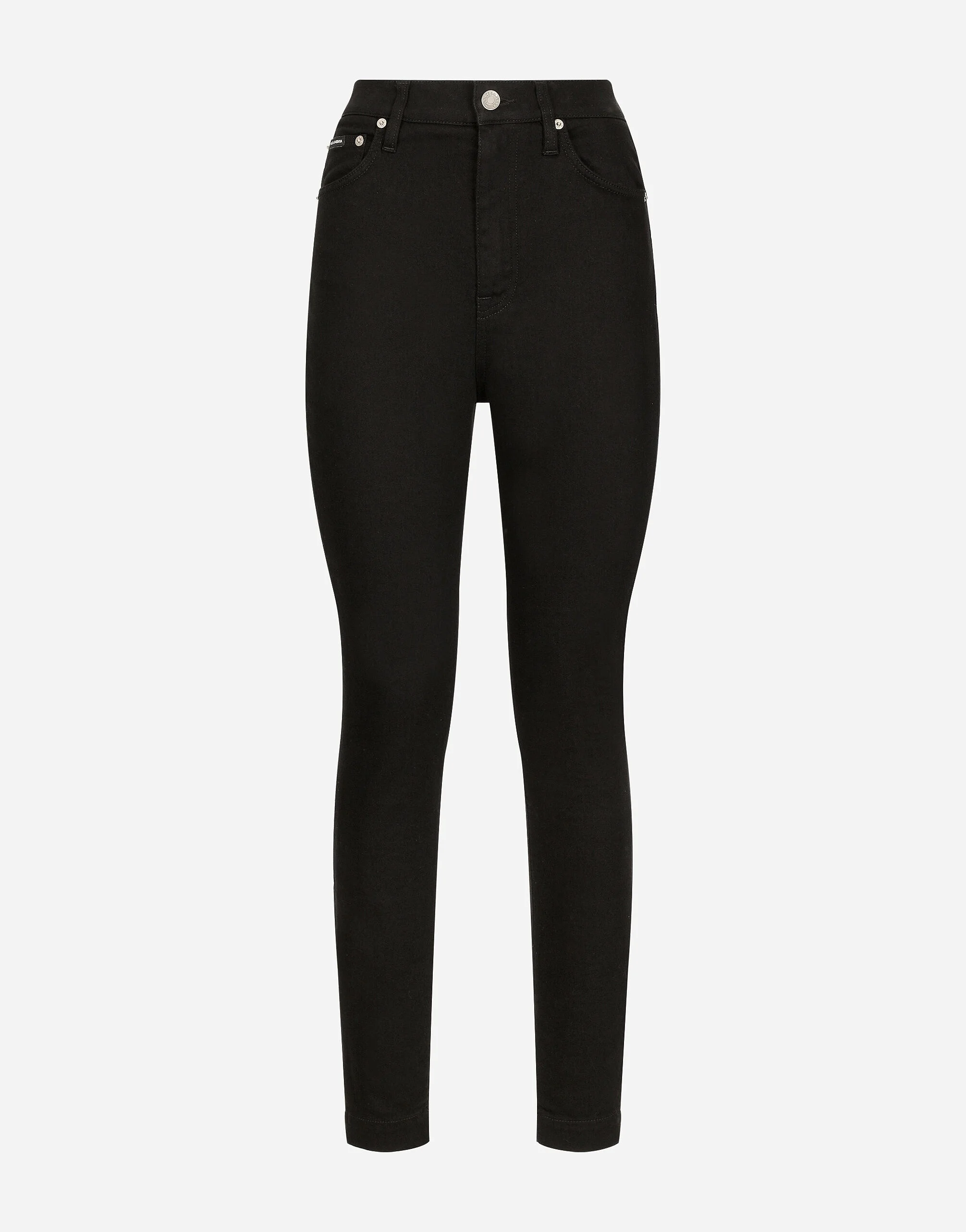 The DNA collection is distinguished by timeless shapes, bringing together three concepts: Sicilian flair, tailoring and sensuality. Nero Sicilia black and optical white predominate and pair with colors that catapult us onto the island of Sicily and make us dream. The designers channel the timeless wardrobe made up of creations that are instantly unmistakable in their simplicity, presenting us with sophisticated beauty loaded with meaning and symbolism that transcends fashion. Stretch cotton denim skinny Audrey jeans: • Black • High-waisted • 5 pockets • Skinny fit • Branded metal and leather tag • Branded label on the coin pocket • Inner leg: 73 cm • Hem: 13.5 cm • Metal button with logo and zipper • The model is 175 cm tall and wears a size IT 40 • Made in Italy External composition: 98% Cotton 2% Spandex