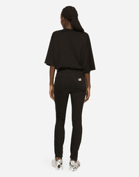 • High-waisted • 5 pockets • Branded metal and leather tag • Branded label on the coin pocket • Inner leg. 73 cm • Hem. 12.7 cm • Metal button with logo and zipper • The model is 175 cm tall and wears a size IT 40 • Made in Italy Care And Details External composition: 99% Cotton 1% Spandex