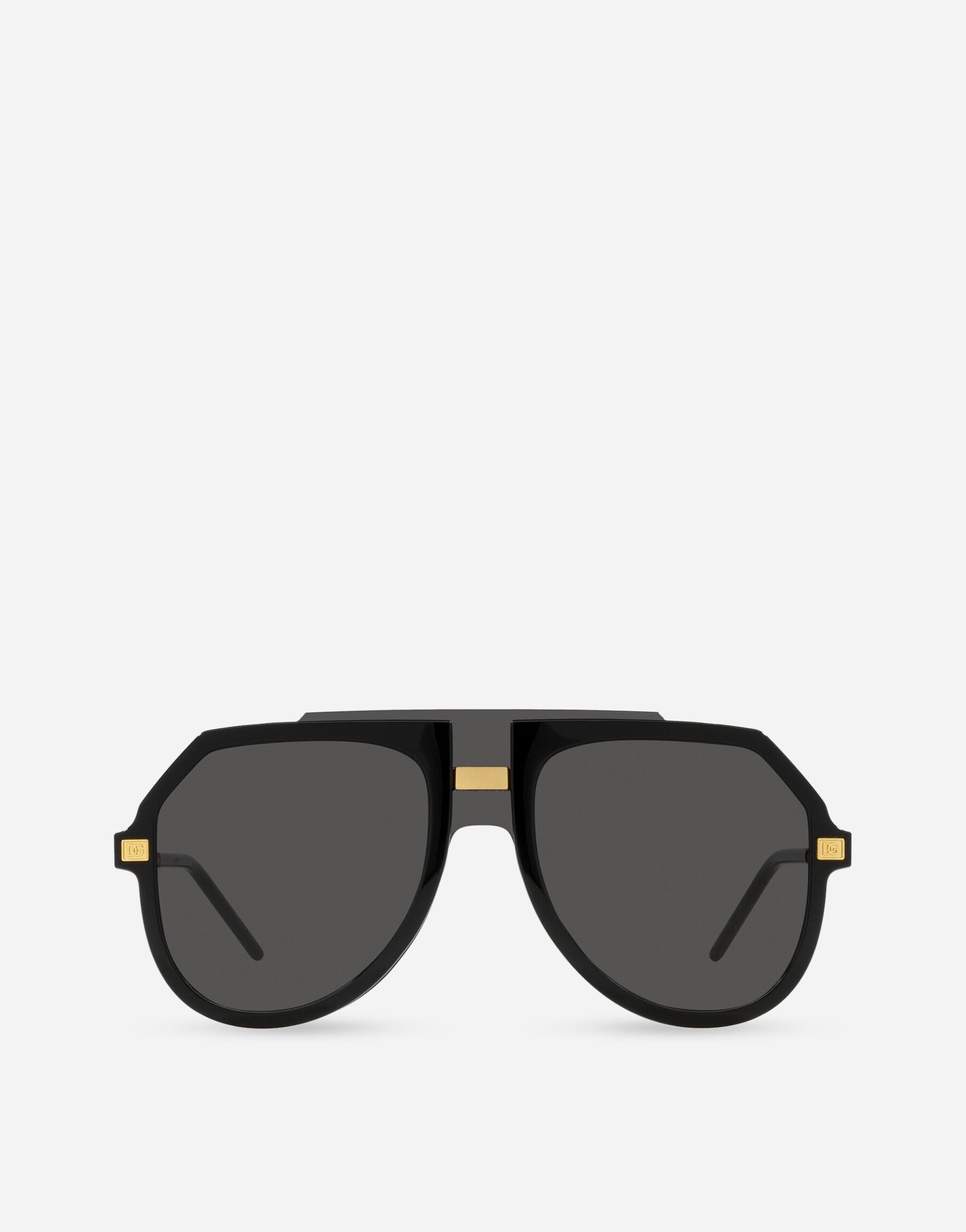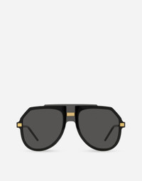 Reinventing the iconic Dolce&Gabbana oversized pilot with a diagonal cut in a modern geometric version, the style is embellished with metal details • Blackacetate frame • Gold acetate temples • Dark grey lenses • 100% UV protection • Size: - 145 - 140 mm • Fitting: Standard • Packaging: Institutional • Made in Italy