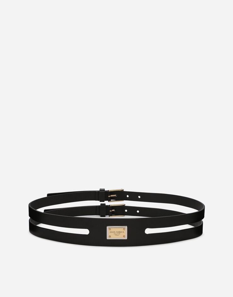 Calfskin belt with logo tag: • Black • The belt strap is 40 mm in height • Double rolled buckle and belt loop stops • Made in Italy Care And Details External composition: 100% Calfskin