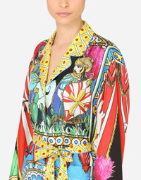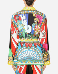 The bright and vibrant colors are kissed by the Sicilian sun on this pajama shirt that comes in fine silk twill: • Notched lapel collar • Long kimono sleeves • Regular fit • Fabric belt and button fastenings • The piece measures 75 cm - 29.5 inches from the rear collar seam on a size IT 40 • The model is 175 cm - 68.9 inches tall and wears a size IT 40 • Made in Italy Care And Details External composition: 100% Silk