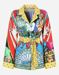 Belted Carretto-print pajama shirt