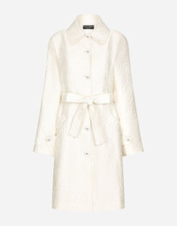 Belted floral jacquard coat: • Shirt collar • Long kimono sleeves • Pockets • Stretch silk satin lining • Belt, canneté-covered button fastenings and DG logo • The piece measures 100 cm from the rear collar seam on a size IT 40 • The model is 175 cm tall and wears a size IT 40 • Made in Italy Care And Details External composition: 64% Cotton 23% Polyester 13% Silk Internal composition: 92% Silk 8% Spandex