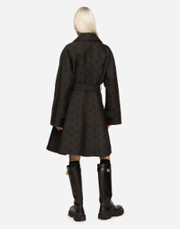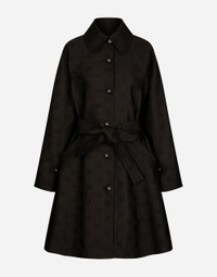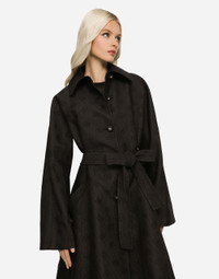 Belted jacquard coat with DG logo: • Shirt collar • Long kimono sleeves • Pockets • Leopard-print stretch satin lining • Belt, canneté-covered button fastenings and DG logo • The piece measures 100 cm from the rear collar seam on a size IT 40 • The model is 175 cm tall and wears a size IT 40 • Made in Italy Care And Details External composition: 43% Cotton 34% Polyester Internal composition: 97% Polyester 3% Spandex