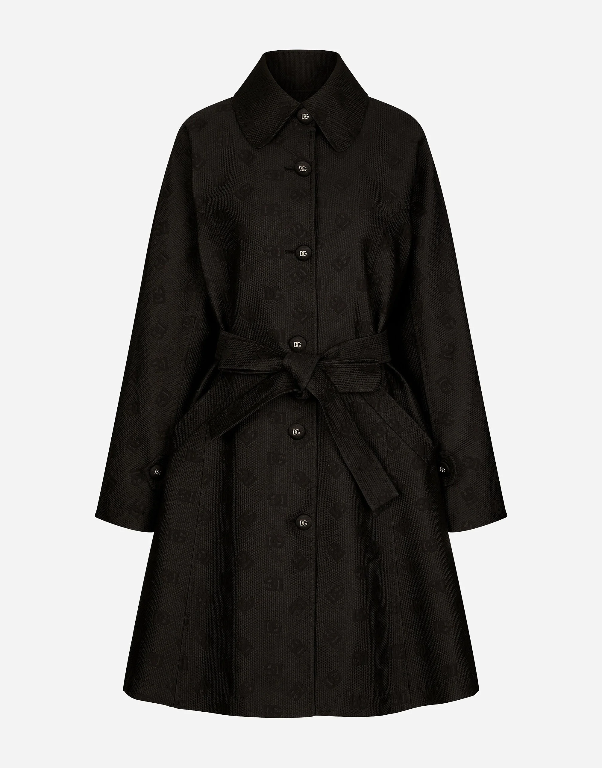 Belted jacquard coat with DG logo