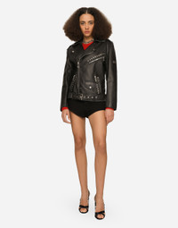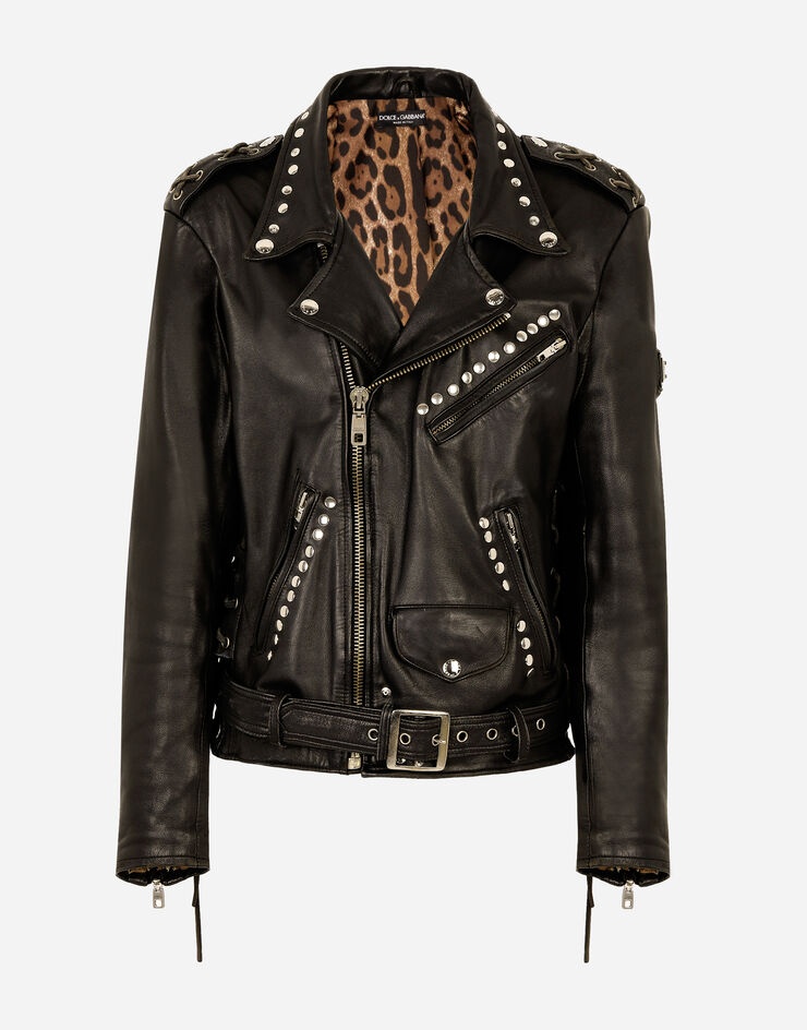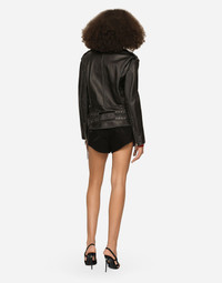 • Shirt collar • Long sleeves with zipper • Zipped pockets • Leopard-print stretch satin lining • Diagonal zipper fastening on the side • The piece measures 60 cm from the rear collar seam on a size IT 40 • The model is 175 cm tall and wears a size IT 40 • Made in Italy Care And Details External composition: 100% Bullskin