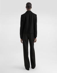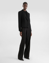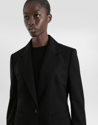 This jacket is the perfect combination of elegance and comfort, ideal for the modern woman who wants a sophisticated and versatile look. Bi-stretch jacket: • Black • Notch lapels • Button closure • Welt pockets • Long sleeves with slits • Undercollar with tex bezel • Semi-structured and lined • Length from shoulder point 55 cm on size 40 IT • The model is 175 cm tall and wears size 40 IT • Made in Italy External Composition: 96% Virgin Wool, 4% Elastane Internal Composition: 97% Polyester, 3% Elastane