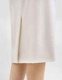 This white pencil skirt is an essential piece for any woman's wardrobe, characterized by an elegant silhouette and sartorial details that enhance femininity with class and refinement. Bi-stretch twill pencil skirt: • White • 5 cm high belt • Center seam on the back • Slit and zip in seam • Lined • The model is 175 cm tall and wears size 40 IT • Made in Italy External Composition: 98% Virgin Wool, 2% Elastane Internal Composition: 97% Polyester, 3% Elastane