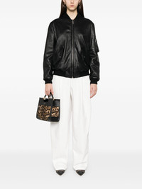 leather jacket Highlights - Black - Front zip fastening - Two side flap pockets - Sleeve zip pocket - Silver-tone logo plaque Made in Italy Composition Outer: Lamb Skin 100% Lining: Polyester 100%, Silk 92%, Elastane 8% SIZE & FIT Model measurements Height 5 ft 10 in(1.78 m) Bust/Chest 33.85 in(86 cm) Hips 36.61 in(93 cm) Waist 26.77 in(68 cm) FittingInformation Designed to be unstructured, offering a loose fit throughout The ribbed hem offers a close, comfortable fit Soft leather has a supple and smooth construction offering some flexibility Washing instructions Specialist Cleaning