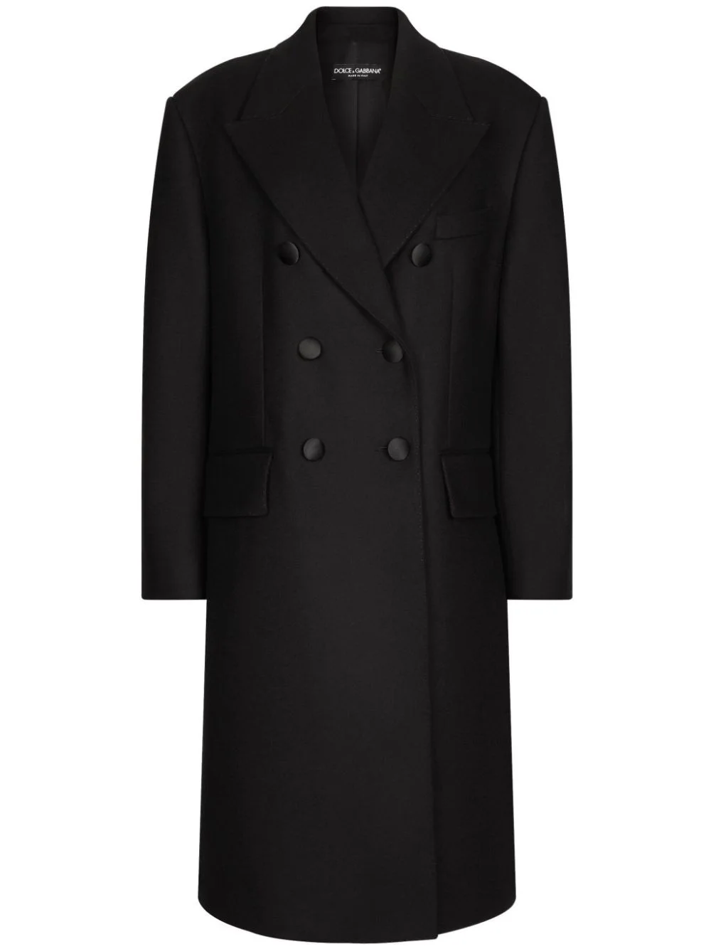 double-breasted coat Highlights - Black - Silk virgin-wool blend - Double-breasted button fastening - Peak lapels - Long sleeves - Two side flap pockets - Below-knee length - Straight hem Made in Italy Composition Outer: Virgin Wool 80%, Polyamide 20% Lining: Silk 100%