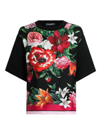 cotton-silk t-shirt Highlights - Black - Crew neck - Short sleeves - Straight hem - Floral print to the front Made in Italy Composition Cotton 60%, Silk 40% Washing instructions Read Manufacturer Guidelines
