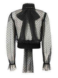 lace bow-detail blouse Highlights - Black - Sheer lace - High neck - Bow tie front - Long sleeves - Ruffled cuffs - Elasticated waistband - Diamond pattern Made in Italy Composition Nylon 100%