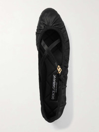 EDITORS'NOTES Dolce&Gabbana's Mary Jane ballet flats have slim crossover straps with the 'D&G' charm in lieu of a traditional buckle. They're made from gathered satin with grosgrain piping and leather insoles. SIZE & FIT - Fits true to size, take your normal size - Only available in full sizes, go up to the nearest whole size if you take a half size - Italian sizing DETAILS & CARE - Slight heel - Black satin - Buckle-fastening strap