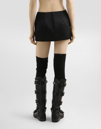 In the Fall/Winter 2025 Fashion Show Collection, shearling jackets, in fur-free versions, reveal slip dresses and create contrast' plays while denim welcomes fabric or Leo print inserts. Sweatshirts are the result of long experimentation with volumes. Evening looks become precious thanks to dresses with special embroideries and luminous touches of sequins and crystals. Sheepskin inserts also unite hats, shoes, and bags, including those with pockets. This skirt is a symbol of modern elegance, perfect for those who love to express their style with unique and refined garments. Made of adhesive duchesse, it is ideal for adding a touch of glamour to your wardrobe. Duchesse skirt: • Black • Straight fit with bow application and brooches in the front • Back closure with covered zip • Lined • Length from waist 36 cm on size 40 IT • The model is 175 cm tall and wears size 40 IT • Made in Italy External Composition: 78% Silk, 22% Polyester Internal Composition: 92% Silk, 8% Elastane
