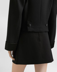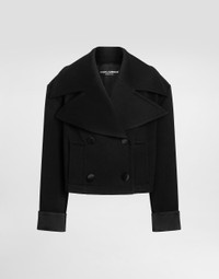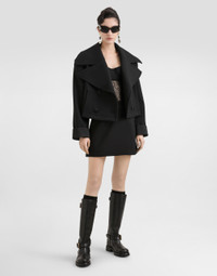 This double-breasted short wool jacket is ideal for those looking for a sporty style with a touch of elegance. Perfect for facing the coolest days with class and comfort. Double-breasted short wool jacket: • Black • Peak lapels • Dropped sleeves cut at the elbow • Tubular bottom with satin cuff • Lined • The model is 175 cm tall and wears size 40 IT • Made in Italy External Composition: 88% Virgin Wool, 8% Silk, 2% Elastane, 2% Polyester Internal Composition: 92% Silk, 8% Elastane