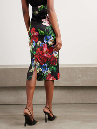 EDITORS'NOTES Dolce&Gabbana's midi skirt captures the sense of Sicilian femininity that's inspired the house for decades. Cut from lustrous satin, it's traced with vibrant florals, like those found on the Italian island, and has an elegant column shape. SIZE & FIT Model measurements: - Fits true to size, take your normal size - Midi-length, designed to be worn at the waist - Lightweight, stretchy fabric - Model is 180cm/ 5'11" and is wearing an IT 38 - Bust: 75cm/ 29.5" - Waist: 60.5cm/ 24" - Hip: 88.5cm/ 35" DETAILS & CARE - Multicolored satin - Concealed hook and zip fastening at back - 96% viscose 4% elastane; lining: 92% silk, 8% elastane - Dry clean