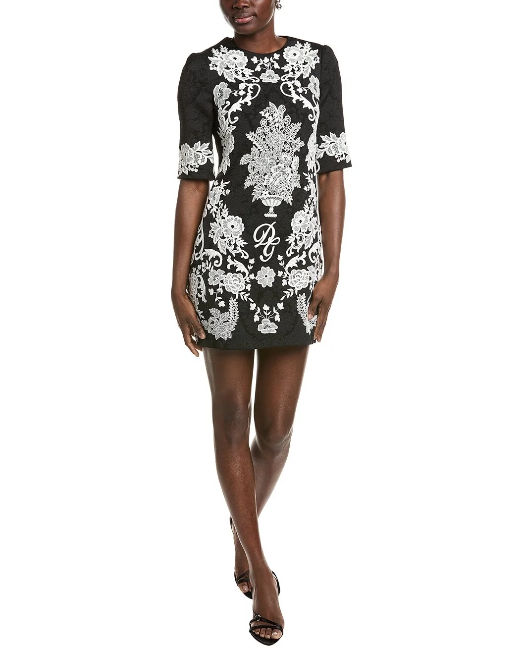 - About the brand: Inspired and versatile pieces infused with Italian culture. - Jacquard Shift Dress in black and white with lace detailing - Please note: Size selections are European. For US conversions, please reference the size chart. - Approximately 33.5in from shoulder to hem - Model is 5'10 and is wearing a size 38. Measurements may vary slightly by size. - Center back zipper with hook-and-eye closure - Shell: 67% polyester, 24% acetate, 17% viscose, 2% elastane - Lining: 94% silk, 6% spandex - Lace: 80% cotton, 20% polyester - Dry clean only - Made in Italy - Our products are 100% genuine. In some cases we purchase merchandise from trusted independent suppliers and not directly from the brand owner. In all cases we stand by the authenticity of every product sold on our site.