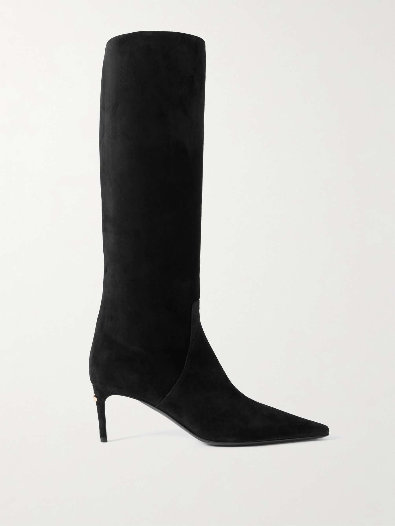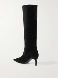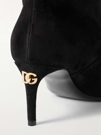 EDITORS'NOTES Every shoe in Dolce&Gabbana's 'Mun' collection is timeless and elegant. Part of the range, these knee boots have been made in Italy from smooth, naturally stretchy suede and feature pointed toes and 60mm heels adorned with a gold-tone monogram plaque. SIZE & FIT - Fits true to size, take your normal size - Italian sizing DETAILS & CARE - Heel measures approximately 60mm/ 2.5 inches - Black suede (Calf) - Pull on
