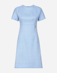 In the FW 24/25 DNA Collection, the rules of classic tailoring have been reworked with an innovative feel. New raschel weave techniques feature on micro-jackets and coats, and original textures are woven on trench coats, skirts, jacquard suits and shirts. The color palette made up of Nero Sicilia black, Milky White and Ocean Blue is also original. The iconic bags in fine nappa leather and “Pyton FC Machine” finish off the looks. Wool raschel tweed midi dress with DG logo: • Light blue • Round neck • Short cap sleeves • Tonal stretch silk satin lining • Rear zipper and hook-and-eye fastening • The piece measures 55 cm from the waist down on a size IT 40 • The model is 175 cm tall and wears a size IT 40 • Made in Italy External composition: 67% Virgin Wool 27% Viscose 06% Polyamide Internal composition: 92% Silk 08% Spandex