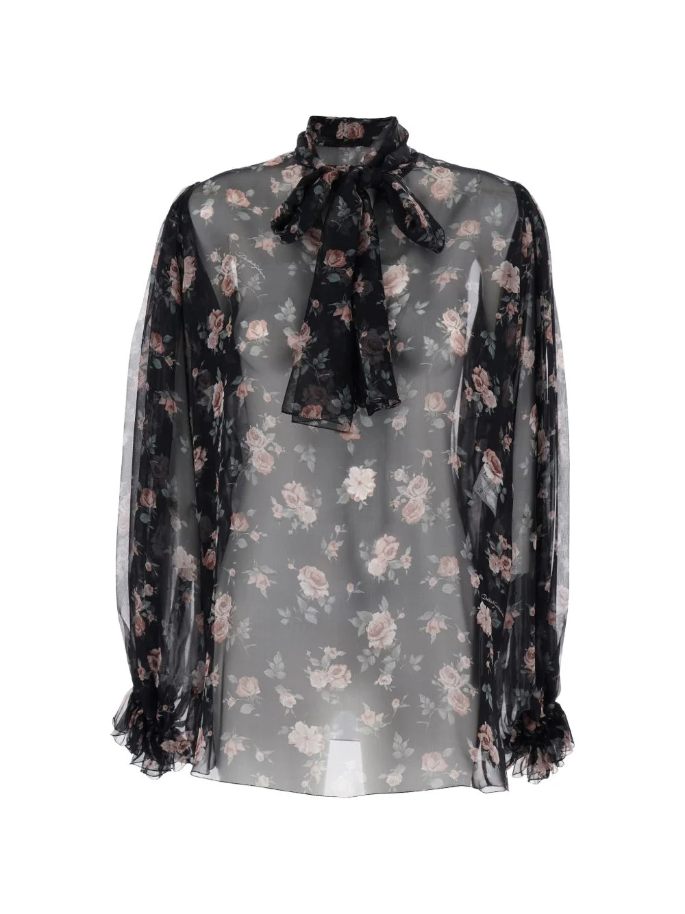 bow ruffled blouse Highlights - Black - Floral print - Pussy bow - Ruffled cuffs - Long sleeves Made in Italy Composition Silk 100% Washing instructions Read Manufacturer Guidelines